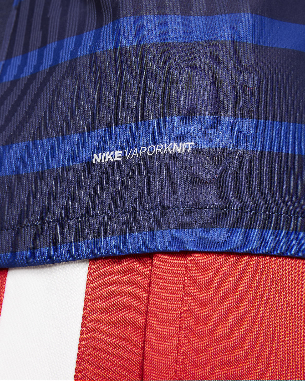 The nike france 2020 home football shirt is predominantly dark blue with white logos.